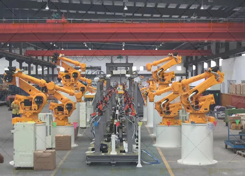 整线由弯板切割机器人工作站、中板坡口机器人工作站、座体机器人焊接工作站、中部槽机器人焊接工作站及中部槽总成机器人焊接线组成,包含整套机器人系统、机器人滑道、桁架梁、机器人焊接系统、两轴变位机、弯板切割机、火焰割炬、激光跟踪系统、焊接平台、柔性组对工装夹具、焊接电源、烟尘净化系统等部分构成