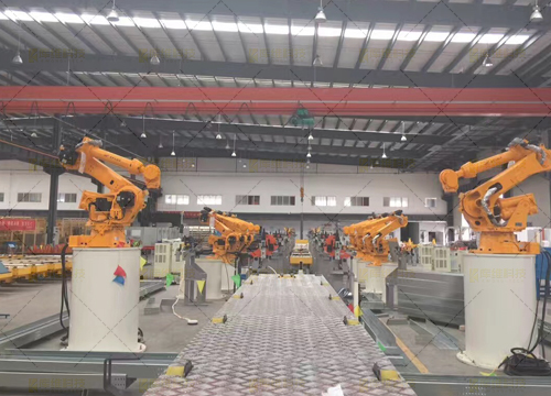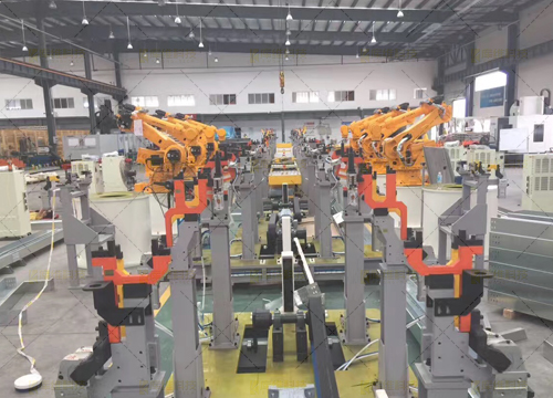 整线由弯板切割机器人工作站、中板坡口机器人工作站、座体机器人焊接工作站、中部槽机器人焊接工作站及中部槽总成机器人焊接线组成,包含整套机器人系统、机器人滑道、桁架梁、机器人焊接系统、两轴变位机、弯板切割机、火焰割炬、激光跟踪系统、焊接平台、柔性组对工装夹具、焊接电源、烟尘净化系统等部分构成
