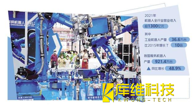 “过去是手机或者汽车行业用机器人多,现在新能源、服务业以及农业领域都开始应用机器人。”王田苗说,过去是大企业用机器人,现在中小企业甚至只有几十人规模的企业也在应用。统计显示,2021年我国制造业机器人密度达到每万人超300台,比2012年增长约13倍。