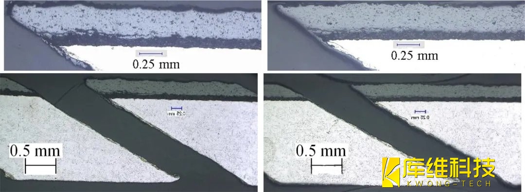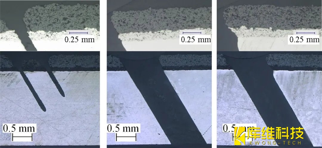 毫秒激光钻孔参数对热障涂层分层的影响如图3所示。在2.4 mm厚的热障涂层镍合金上以30°角钻孔0.75 mm孔。初始冲击以2.5 J、0.25 ms、25 Hz、100次脉冲进行,并使用空气作为辅助气体。钻孔的峰值功率为10kw,脉冲持续时间为0.5 ~ 1ms。选择这些参数是为了在钻孔上获得最佳的冶金性能。由于孔内壁上有过多的重铸层,小于0.5 ms的脉冲持续时间不是镍高温合金钻孔的最合适参数。