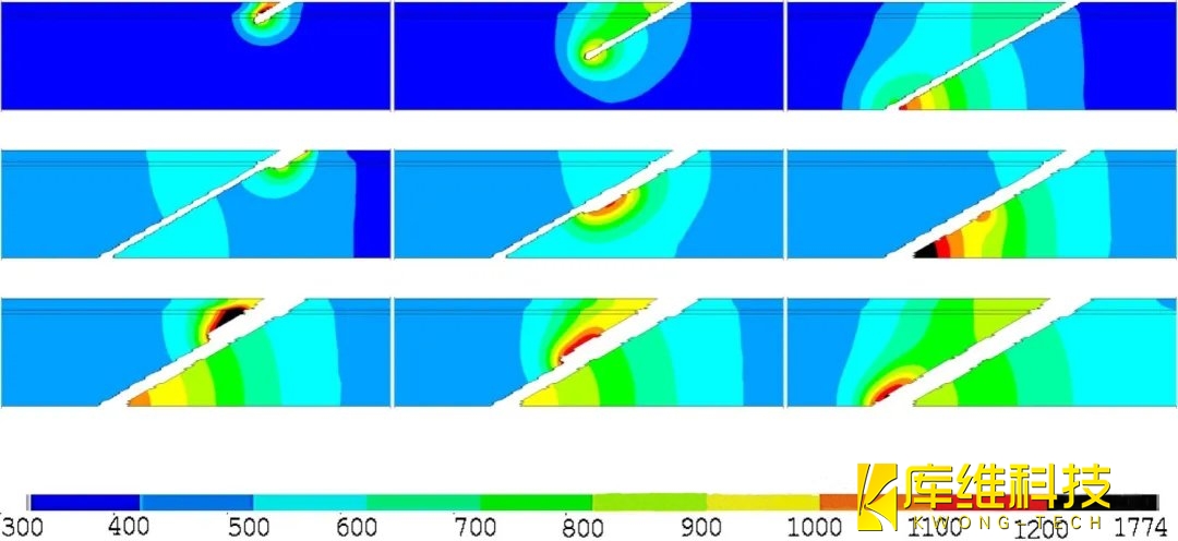 从图7中可以看出,随着水射流冷却的增强,纳秒激光脉冲显著降低了每个激光脉冲末端的残余温度。另一个主要观察结果是,水导激光过程的热点完全包含在激光照射区内(图7),这最终有助于阻止热障涂层分层。