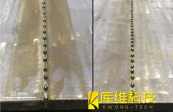 焊接样品显示出了优异的焊接质量,焊接底部没有气孔且无明显驼峰,钢板表面填充完美,这些都是良好底部形态的特征。这些结果得益于激光能量更有效的传递至板材底部,扩大了熔池,从而避免了焊接驼峰缺陷的形成。这一发现对于理解和控制焊接过程中的物理现象具有重要意义,为焊接工艺的进一步优化提供了科学依据。