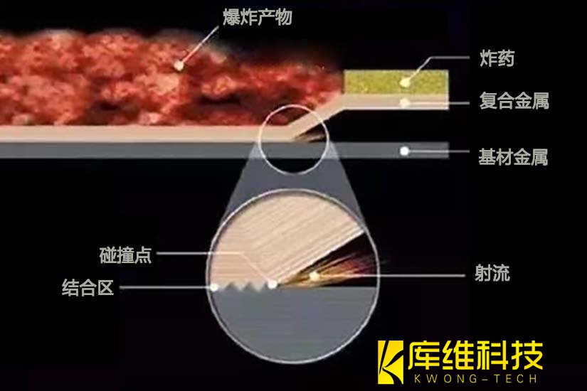 在两块金属材料碰撞时,其表面的薄膜会发生塑性变形。由于碰撞速度极高,可达 200 - 500m/s,在极短时间内,这些薄膜会从基体上喷射出去。同时,少数原子层因碰撞速度快而变成 “浆状物”。碰撞的角度(安装角)使得浆状物在碰撞点之前喷射出去,有效地清除了表面玷污层,如金属表面的氧化膜和吸附层等,从而留下清洁的金属表面。当爆炸完成后,浆状物迅速冷却,在融合线处形成一种金属与另一种金属的冶金结合。这种结合过程中,金属基体的物理和机械性能并没有降低,并且在融合线处形成的波形常常被描述为 “液流” 碰撞,反应区中两种成分的金属以粘性流体的方式相互作用。