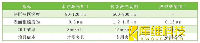 实验显示,水导激光在保证表面质量的前提下,综合加工成本较磨削工艺降低62%,产品交付周期缩短75%。特别在加工异形气隙槽、微型定位孔等精密结构时,展现出独特的技术适应性。