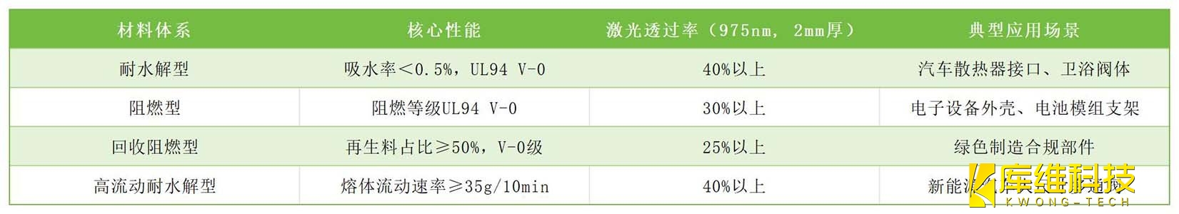 激光透射焊接的核心瓶颈在于​​透光层材料的光学性能与功能性平衡​​。传统PA66-GF30材料虽具备优异力学性能,但其激光透过率受玻纤分散性、吸湿性影响,难以满足复杂工况需求。通过配方创新与工艺优化,构建了多维度材料解决方案:
