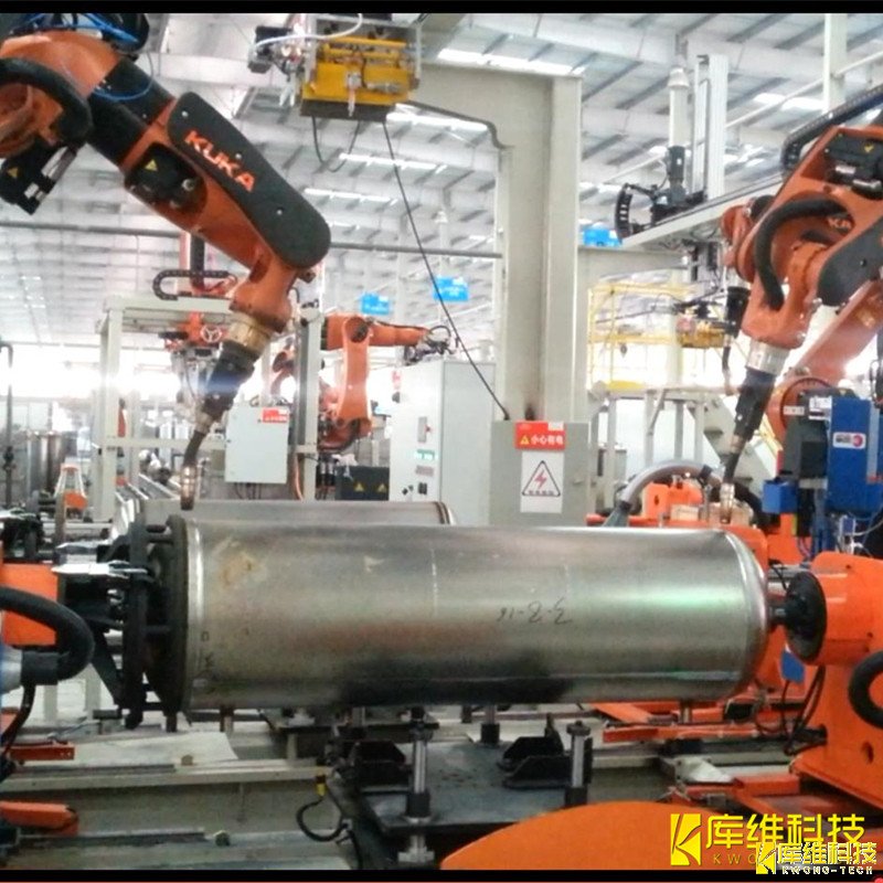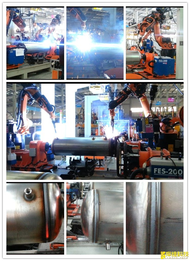 思佳智能于2015年与某企业合作建设智能压力容器(热水器内胆)自动化焊接生产线项目,成功实现经济效益和产能效益双提升。压力容器智能机器人柔性自动化生产线是由柔性机器人工作站及输送线体组成的一站式柔性自动化生产线。生产线通过集成视觉检测及对位、自动焊接、自动搬运及其它各种辅材等功能来实现压力容器的自动生产。