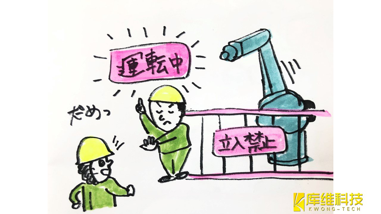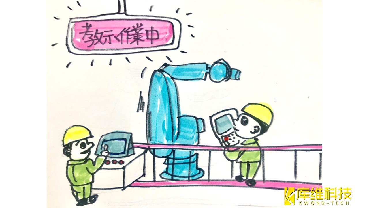 但工业机器人的大部分示教工作都是在驱动源(伺服电源)开启的情况下完成的,而且工作必须在工业机器人的可移动区域内完 成。这是一项不符合这两个条件的危险任务。因此,在教学工作中要不断地有“工业机器人不知道何时动”的危机感,思考“故 障对策”。