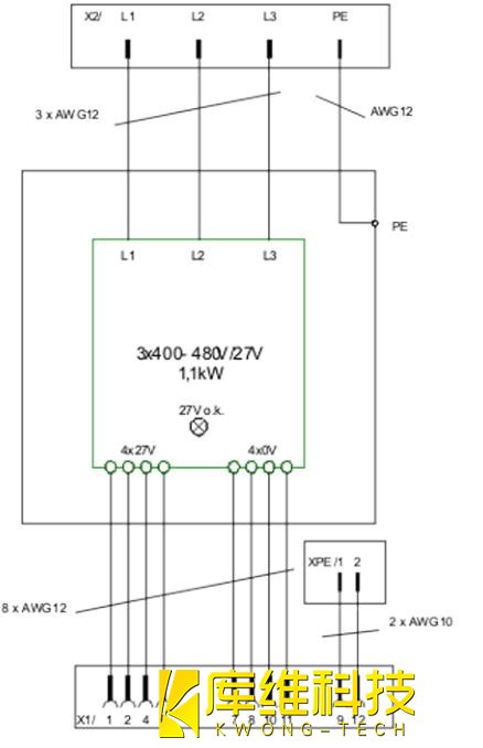 工业机器人KRC 4 27V 电源件的原理性接线图如下