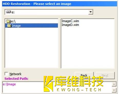 5. 为分区 C 选取存储器映射 C.WIM,或为分区 D 选取存储器映射 D.WIM 。总是建立两个分区。 点击 【 下一步】键继续。就此建立硬盘映射。