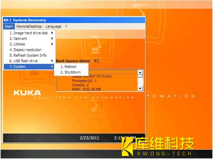 2. 插上具有起动功能且带有映射文件的库卡 U 盘,然后重启控制系统