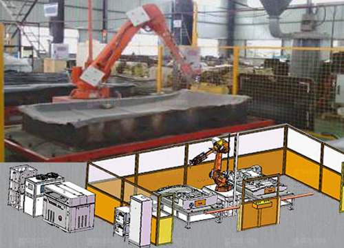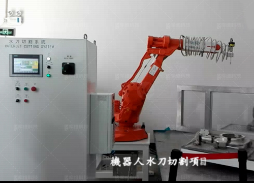FA水切割,机器人可交替在两个工位切割作业,另一工位上下料,适合尺寸较大,精度要求高,复杂异形材料等切割加工,如车用顶棚、地毯等汽车内饰件。
